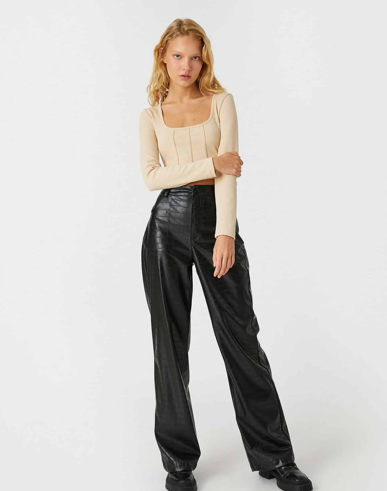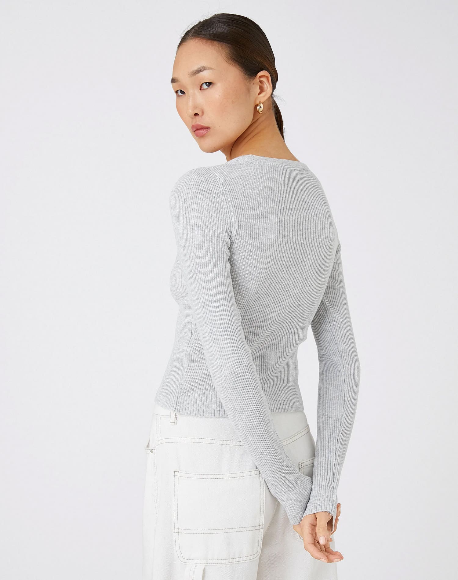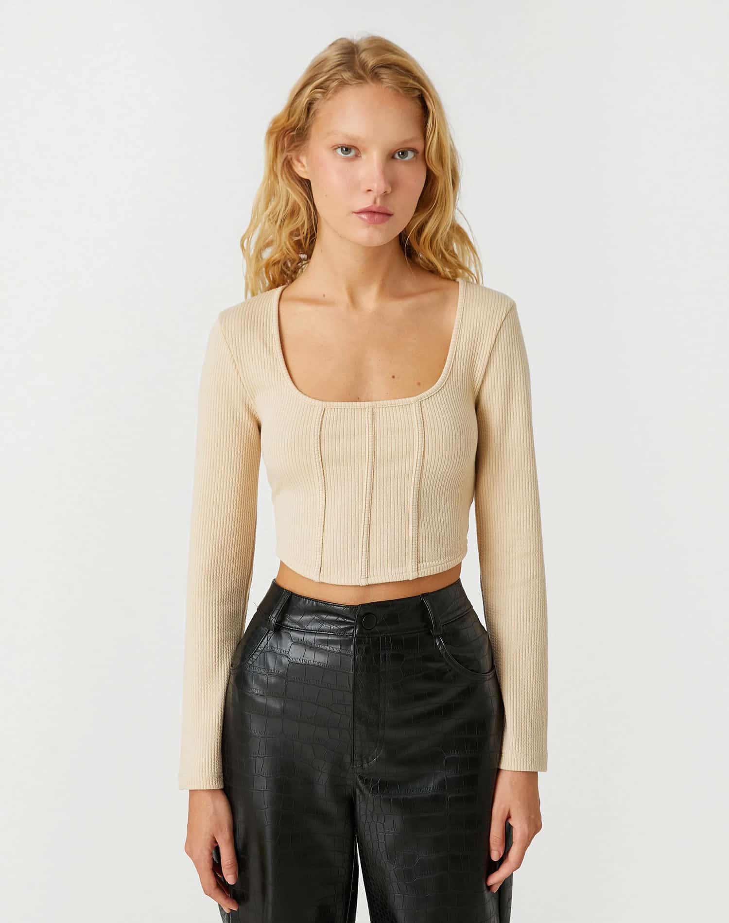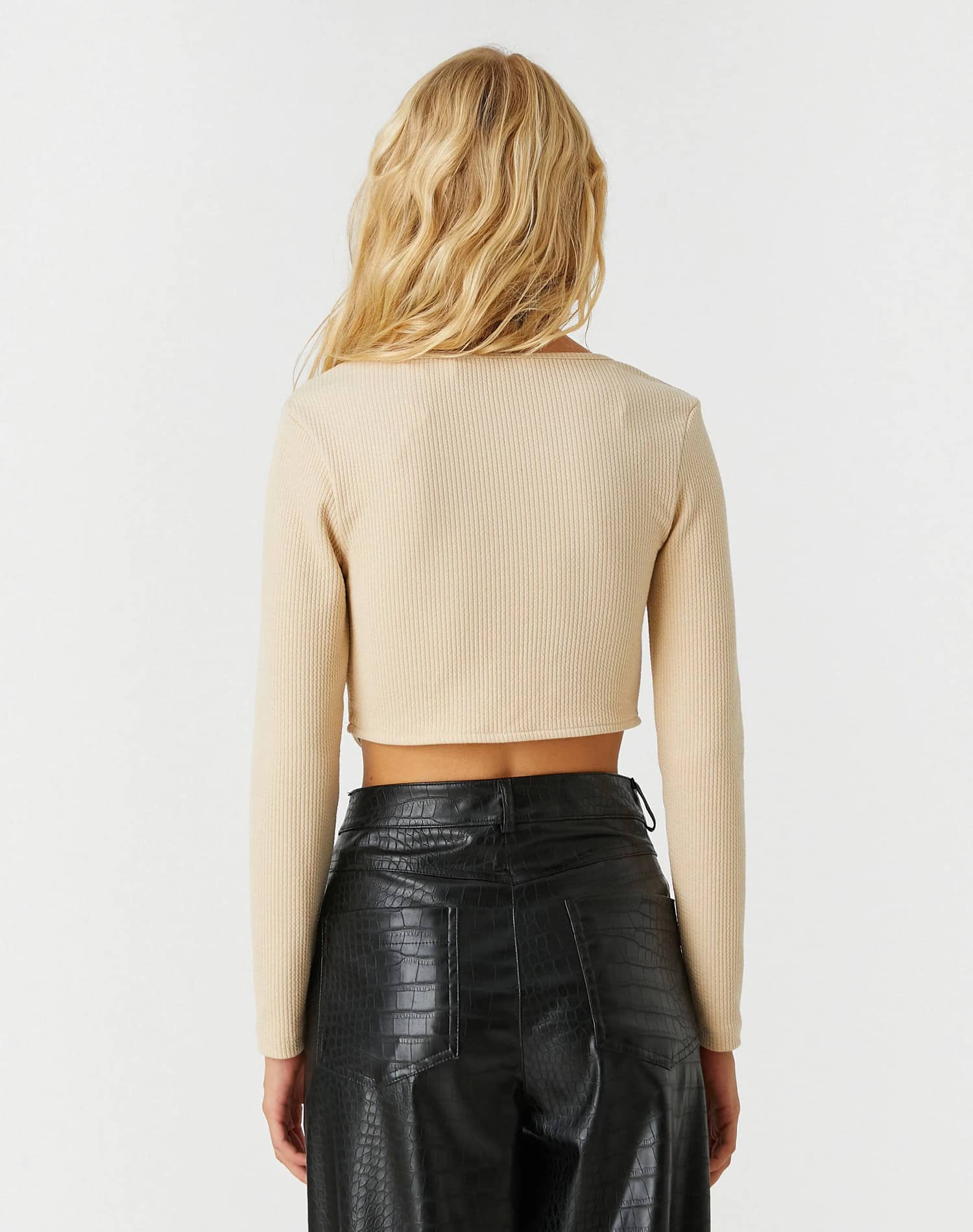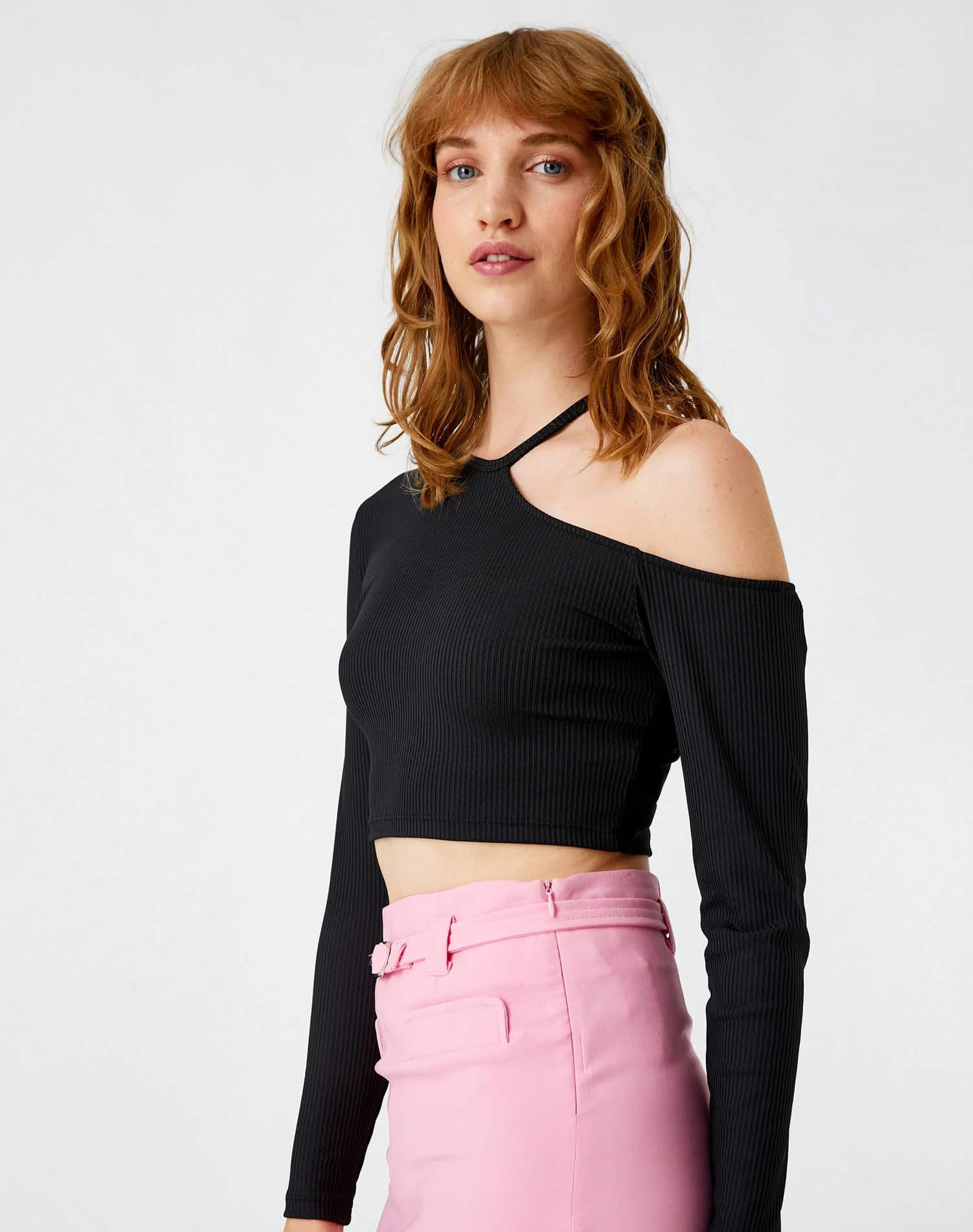 Long Sleeve T-Shirt Round Neck Shoulder Detailed