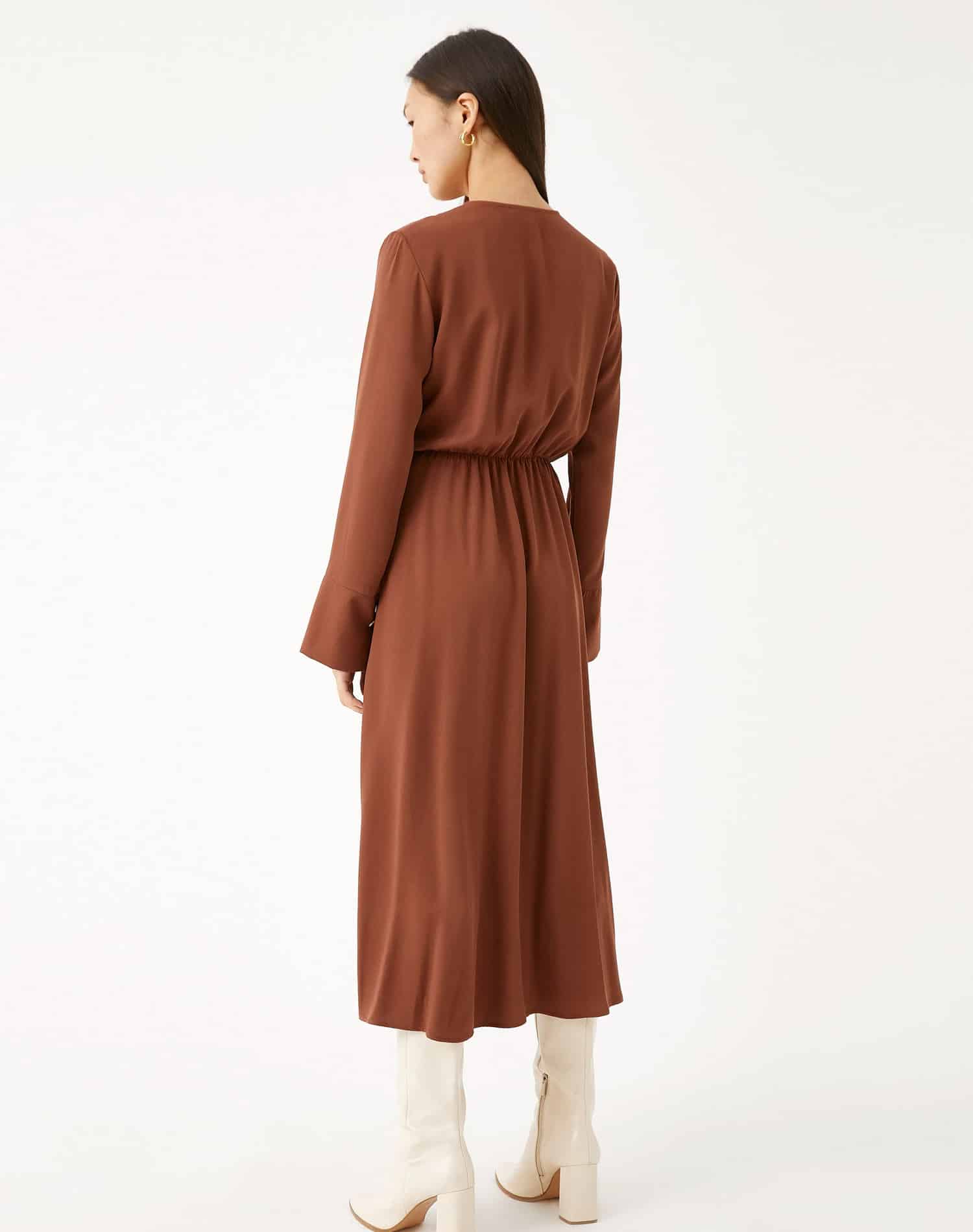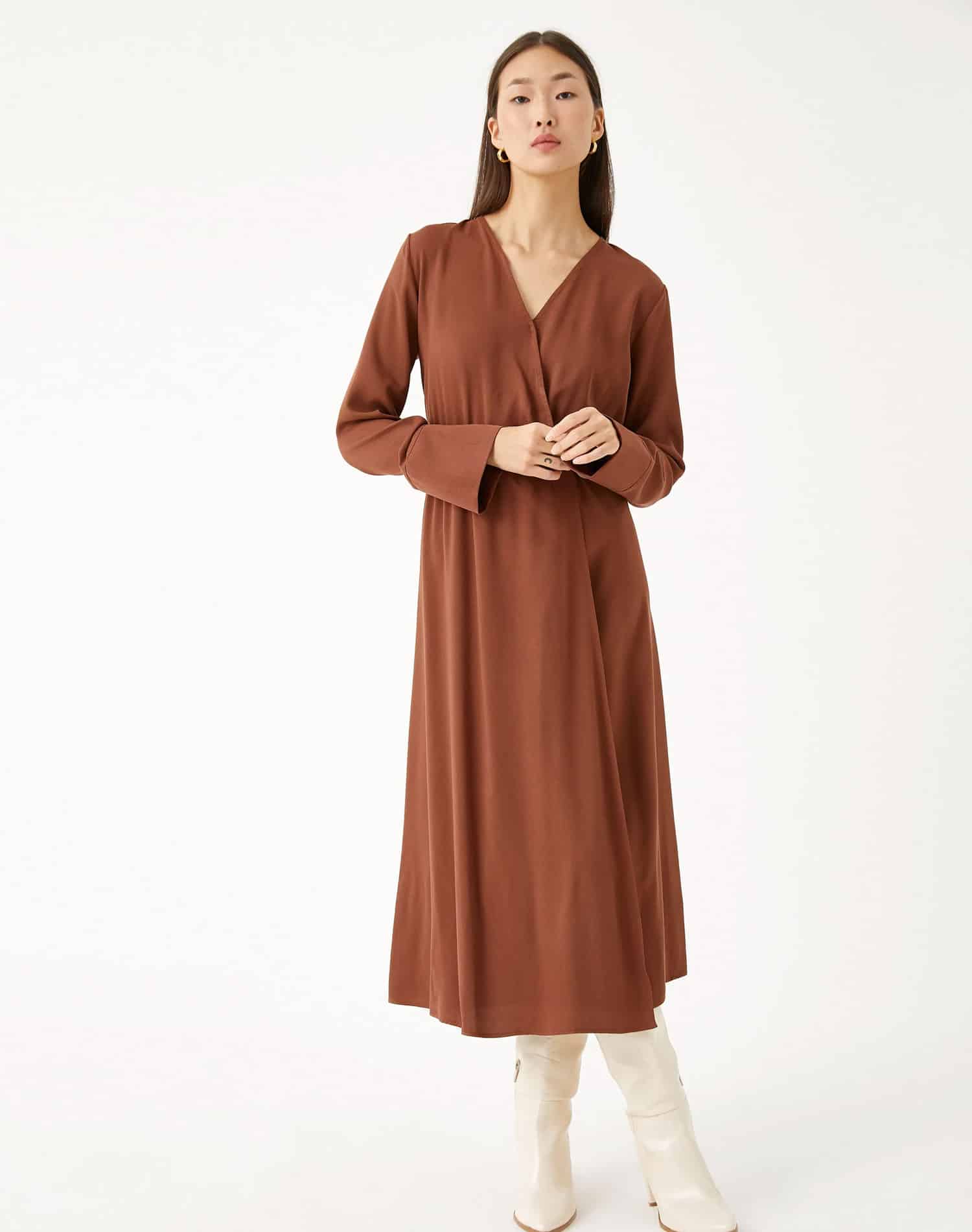 Midi Length Dress Wrapped Button Detailed