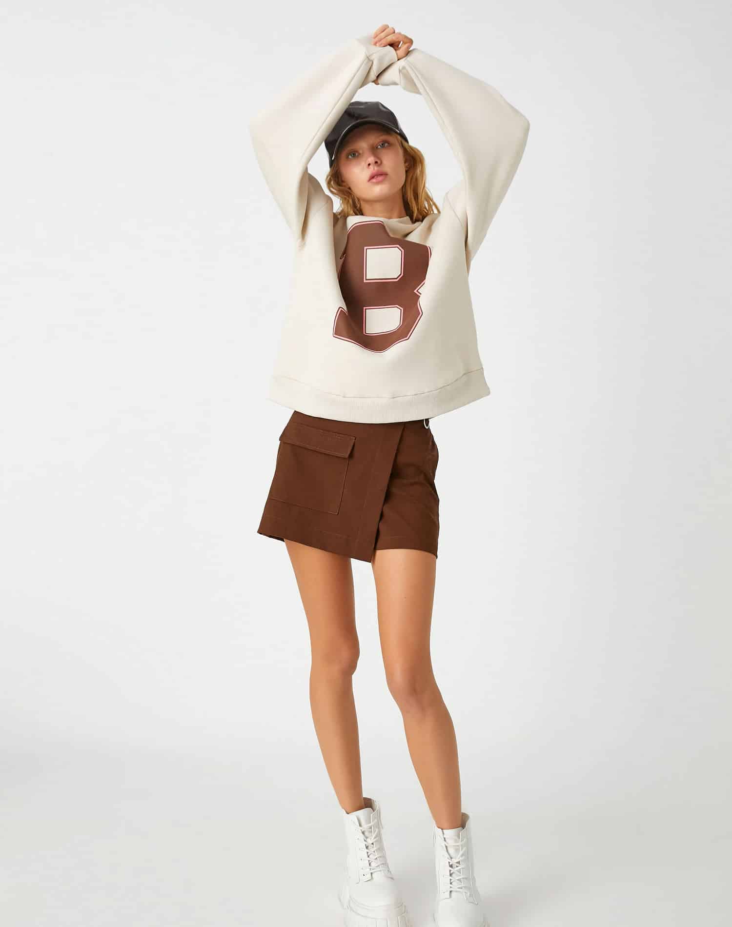 Short Skirt Double Belt Detailed Wide Pleated