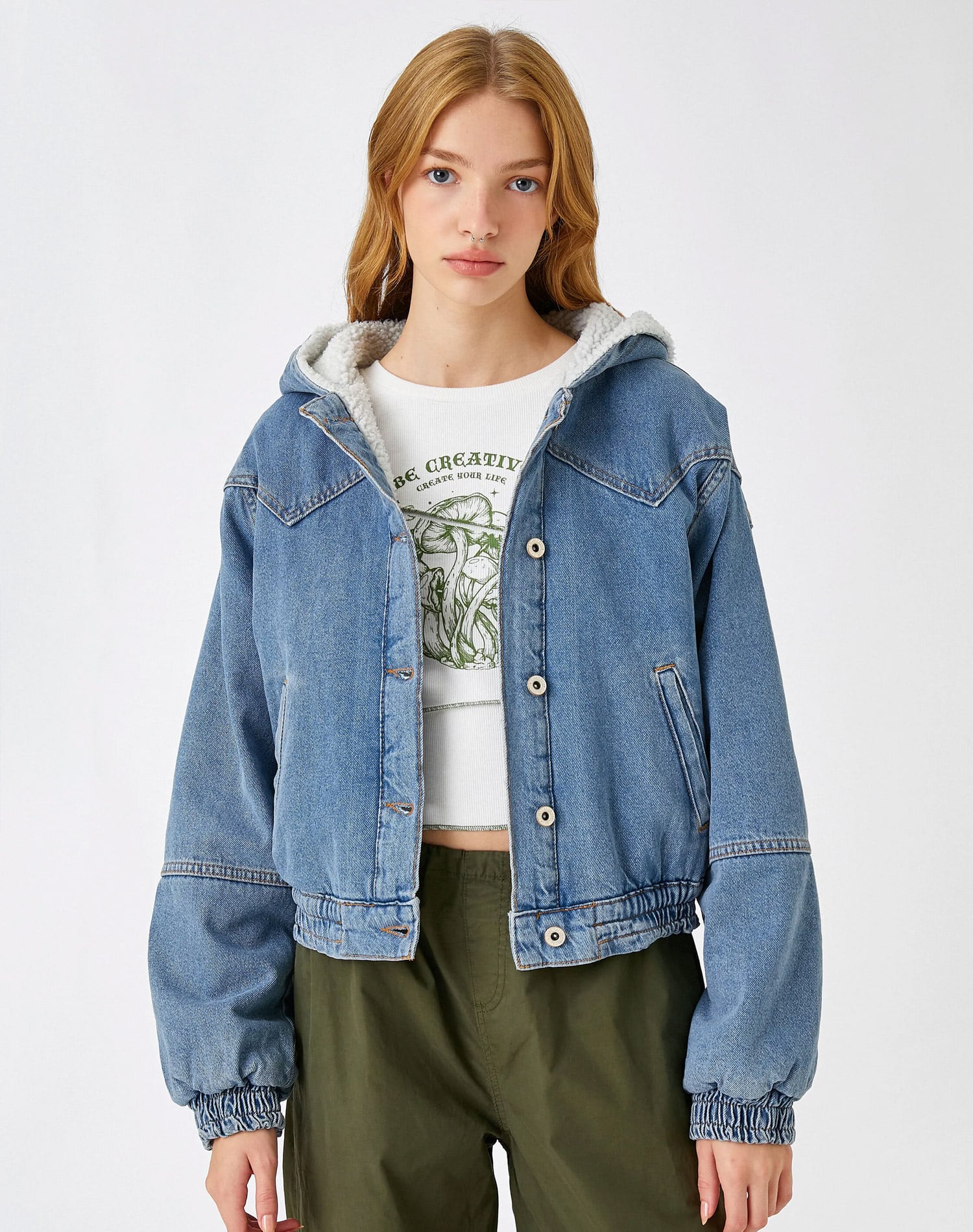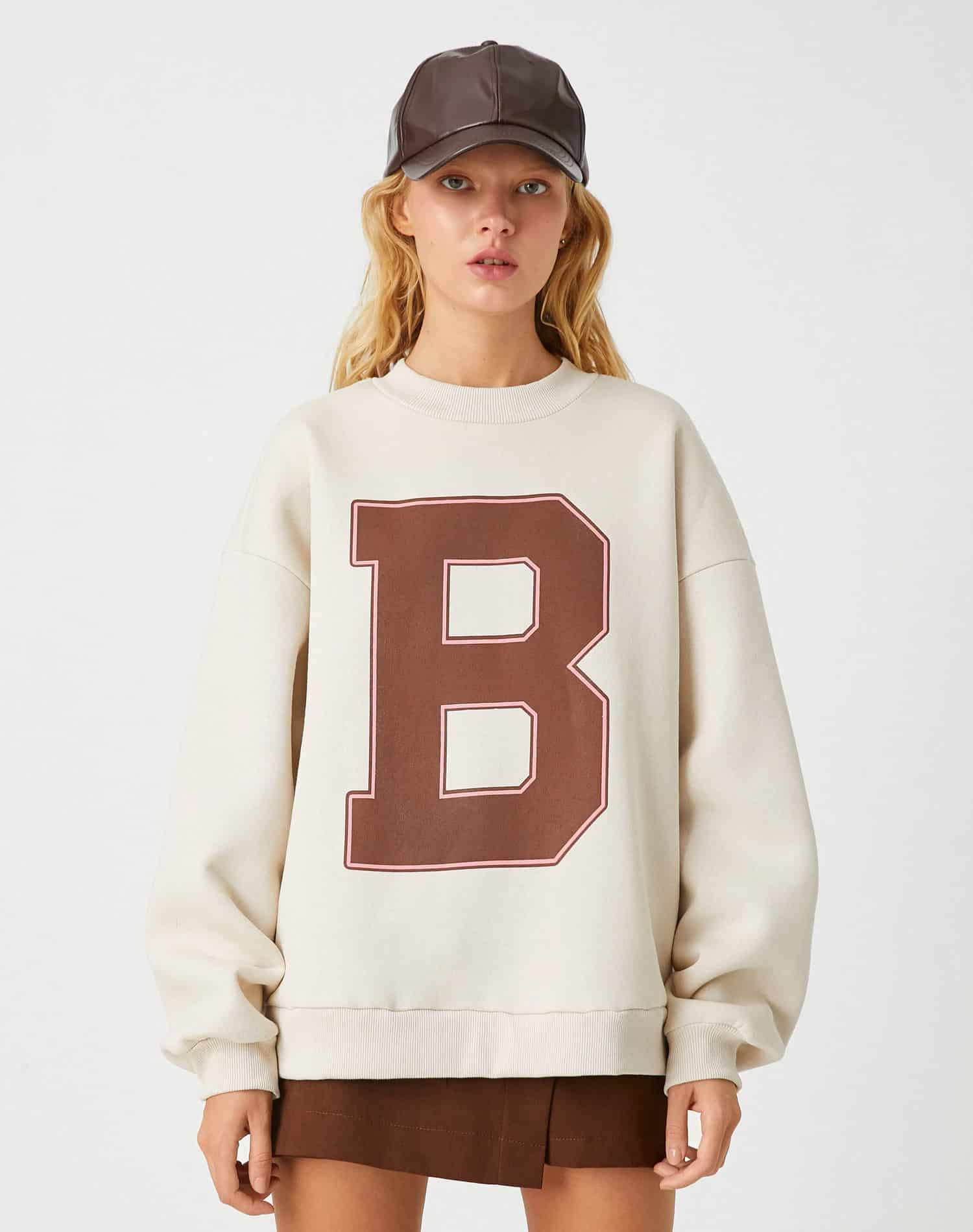 Oversize Bomber College Jacket Printed Fleece Inside
