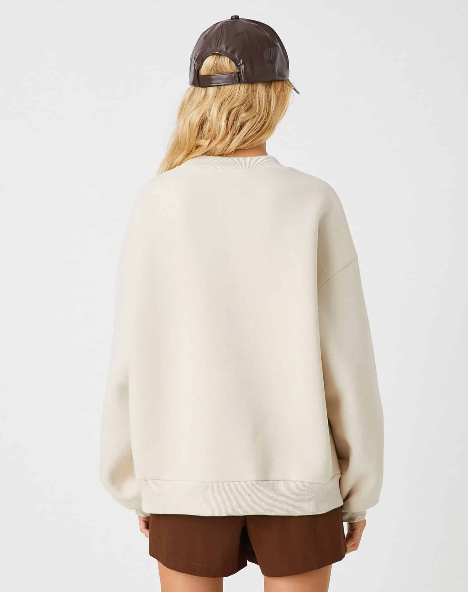 Printed College Sweatshirt Crew Neck Long Sleeve Fleece Inside